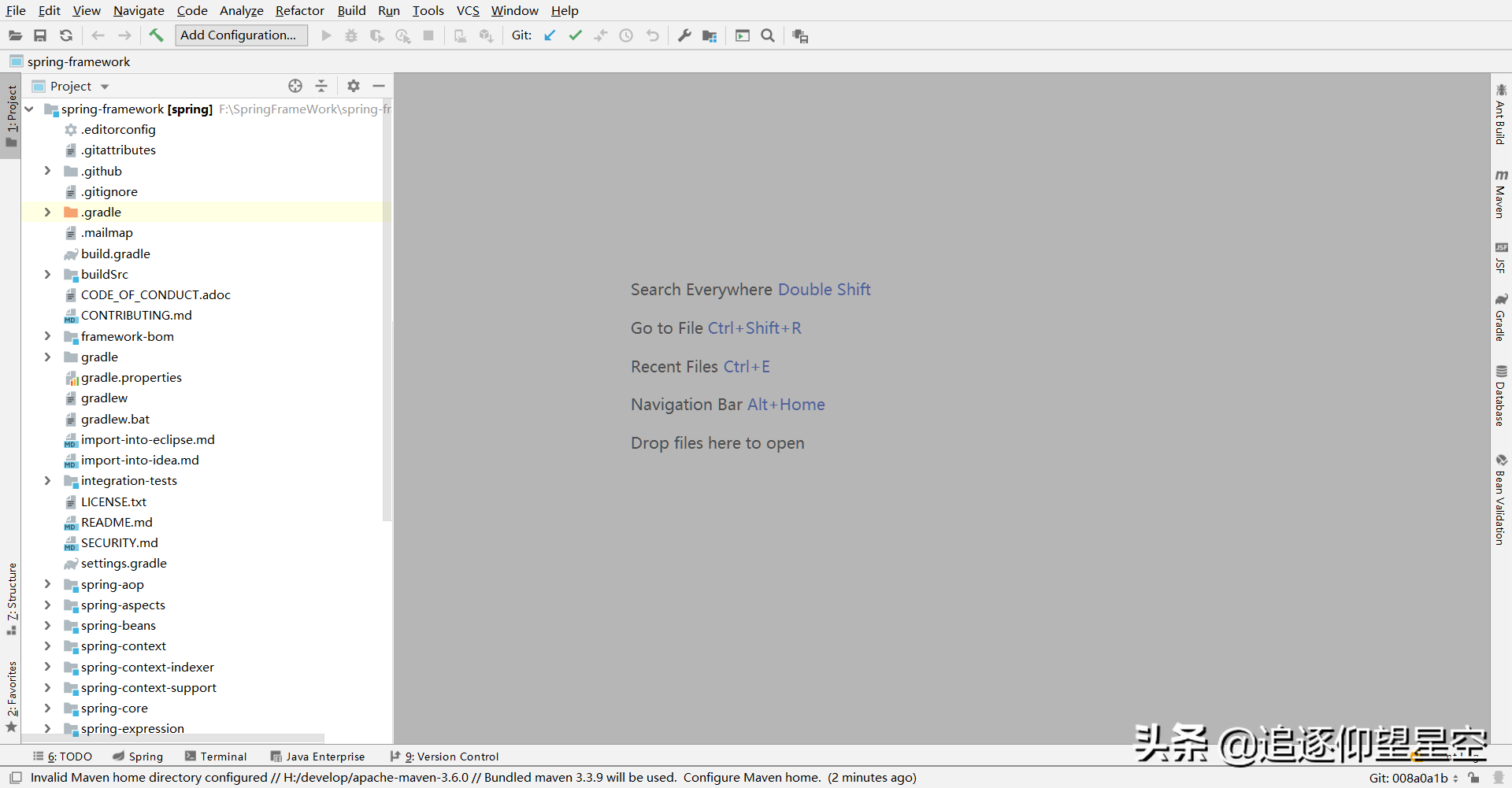 gitclonehttps://github.com/spring-projects/spring-framework.git接着等待仓库克隆完毕,这个过程可能会耗费比较长的时间,如果实在不行的话,大家可以直接将源码的压缩包down下来。