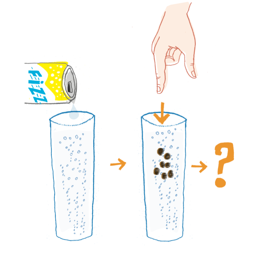 材料:一个高玻璃杯、碳酸饮料(比如雪碧)、一小把葡萄干