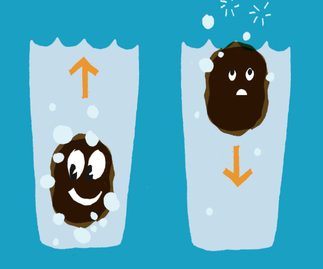 2.丢几颗葡萄干到杯子里,观察看看,它们会浮起来还是沉下去呢?