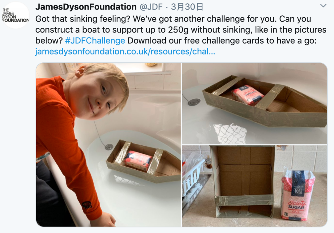 △ 孩子们完成了挑战很有成就感,会在推特上@戴森基金会