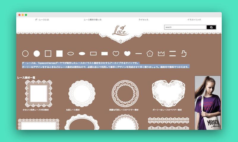 专门收集花边素材为主的站点,蕾丝风格的花边插图,特别适合婚纱设计方面的用途。