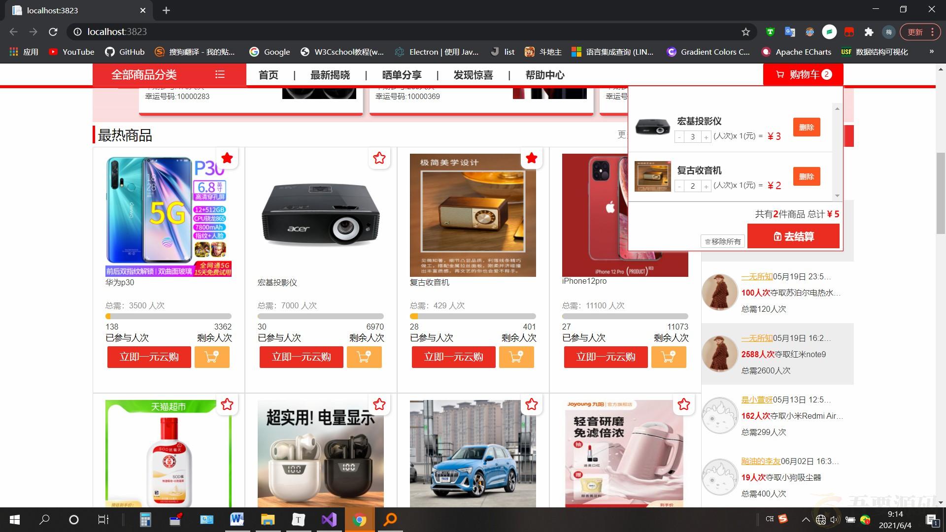我的云购,云购详情,商品收藏,商品关键字搜索,商品分类查询,购物车,中奖记录,最新揭晓,主页推荐,开奖提示,